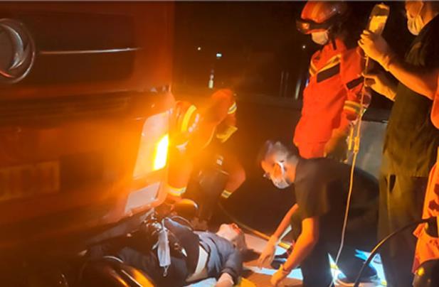 貨車和摩托車相撞司機(jī)被卡車底消防緊急救援