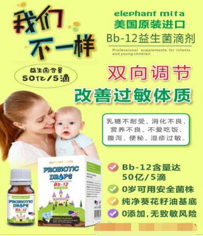 小象米塔|美國(guó)進(jìn)口滴劑Bb12益生菌,預(yù)防寶寶秋季咳嗽的幫手