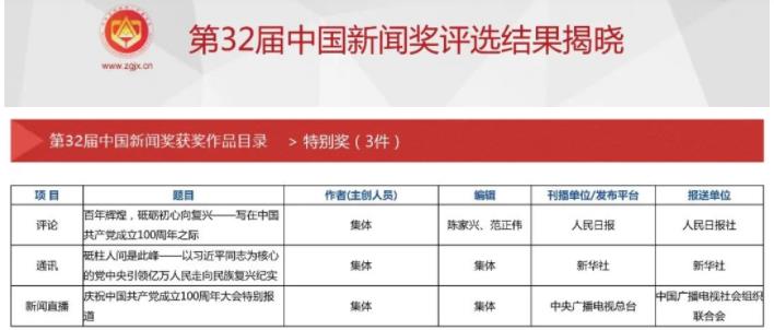 第32屆中國(guó)新聞獎(jiǎng)、第17屆長(zhǎng)江韜奮獎(jiǎng)揭曉