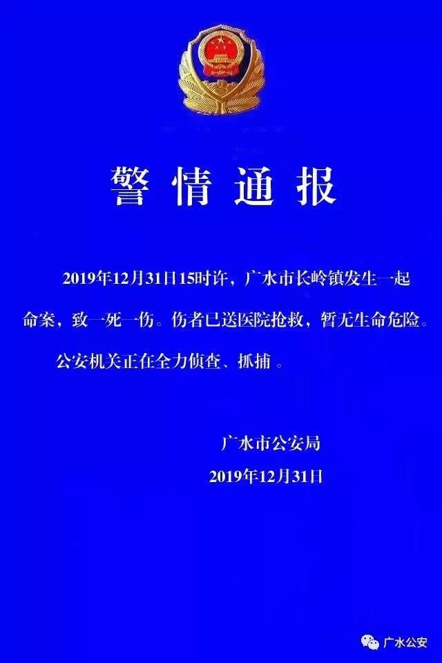 湖北省廣水市公安局通報,2019年12月31日15時許,廣水市長嶺鎮(zhèn)發(fā)生一起命案,致一死一傷。傷者已送醫(yī)搶救,暫無生命危險?! ?.....