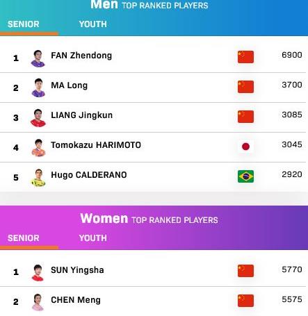 國際乒聯(lián)更新排名:樊振東、孫穎莎繼續(xù)排名世界第一