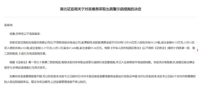 擔任監(jiān)事期間配偶構成短線交易湖北證監(jiān)局對微創(chuàng)光電吳春燕出具警示函