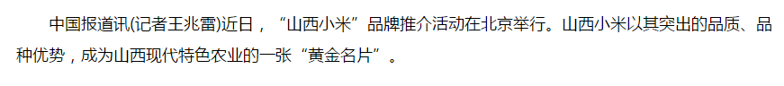)近日,“山西小米”品牌推介活動在北京舉行。山西小米以其突出的品質、品種優(yōu)勢,成為山西現(xiàn)代特色農業(yè)的一張“黃金名片”。 “山西......