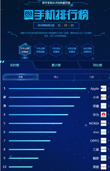 蘇寧818手機(jī)榜:諾基亞進(jìn)前五,超vivo、OPPO