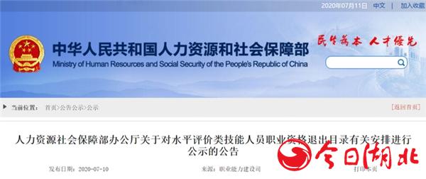 7月10日消息,人力資源和社保保障部發(fā)布關(guān)于《人力資源社會(huì)保障部辦公廳關(guān)于對(duì)水平評(píng)價(jià)類技能人員職業(yè)資格退出目錄有關(guān)安排進(jìn)行公示的......