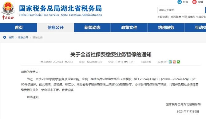 湖北社保通告:暫停服務(wù)