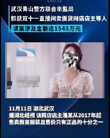 直播賣假貨涉案達1545萬元商家雙十一當天正直播時被查
