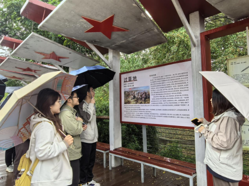 恰逢中國工農(nóng)紅軍長征勝利九十周年暨“十五五”規(guī)劃開局之年,為引導(dǎo)青年學(xué)子傳承紅色基因、淬煉堅毅品格,2025年11月9日,武漢商學(xué)院經(jīng)濟學(xué)院輔導(dǎo)員李璐璐帶領(lǐng)30名學(xué)生赴墨水湖公園“重走長征路”紅色教育基地,開展了一場雨中沉浸式思政實踐活動。